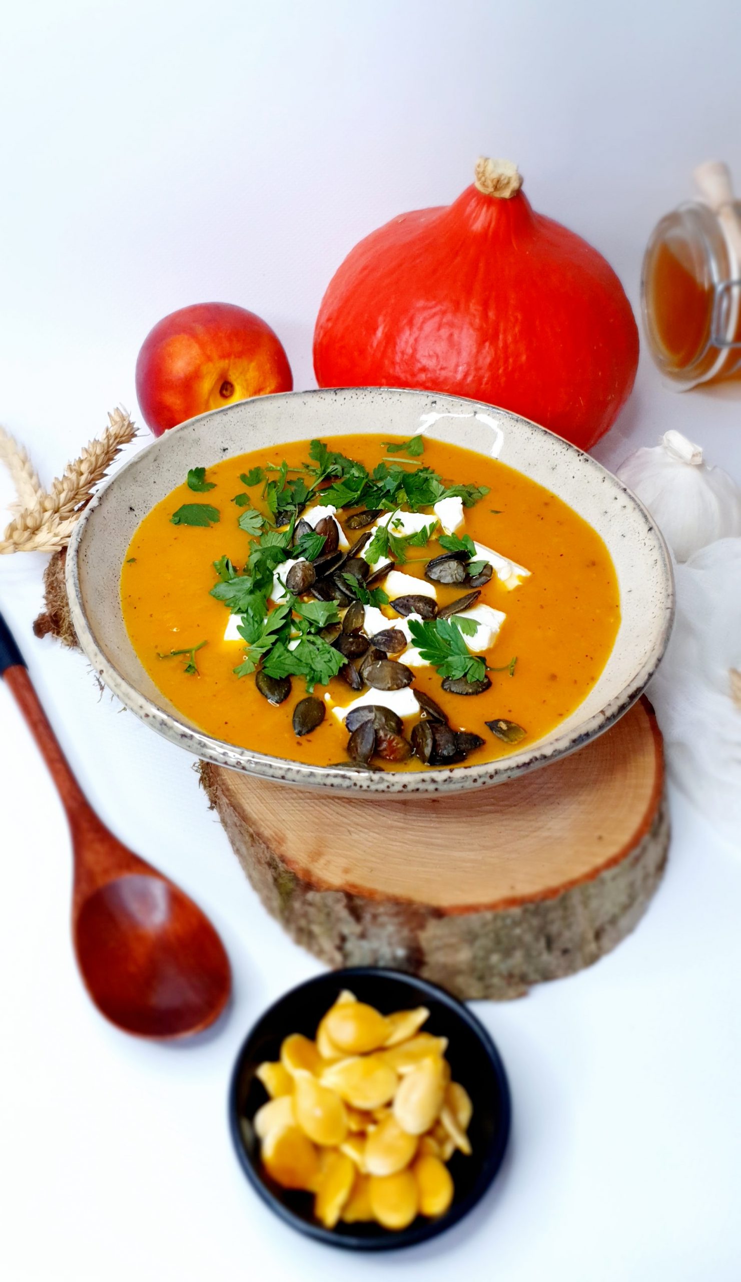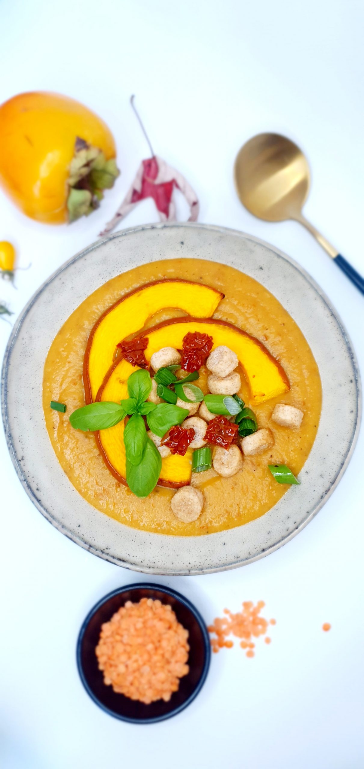 Pikantny krem z dyni z soczewicą i suszonymi pomidorami