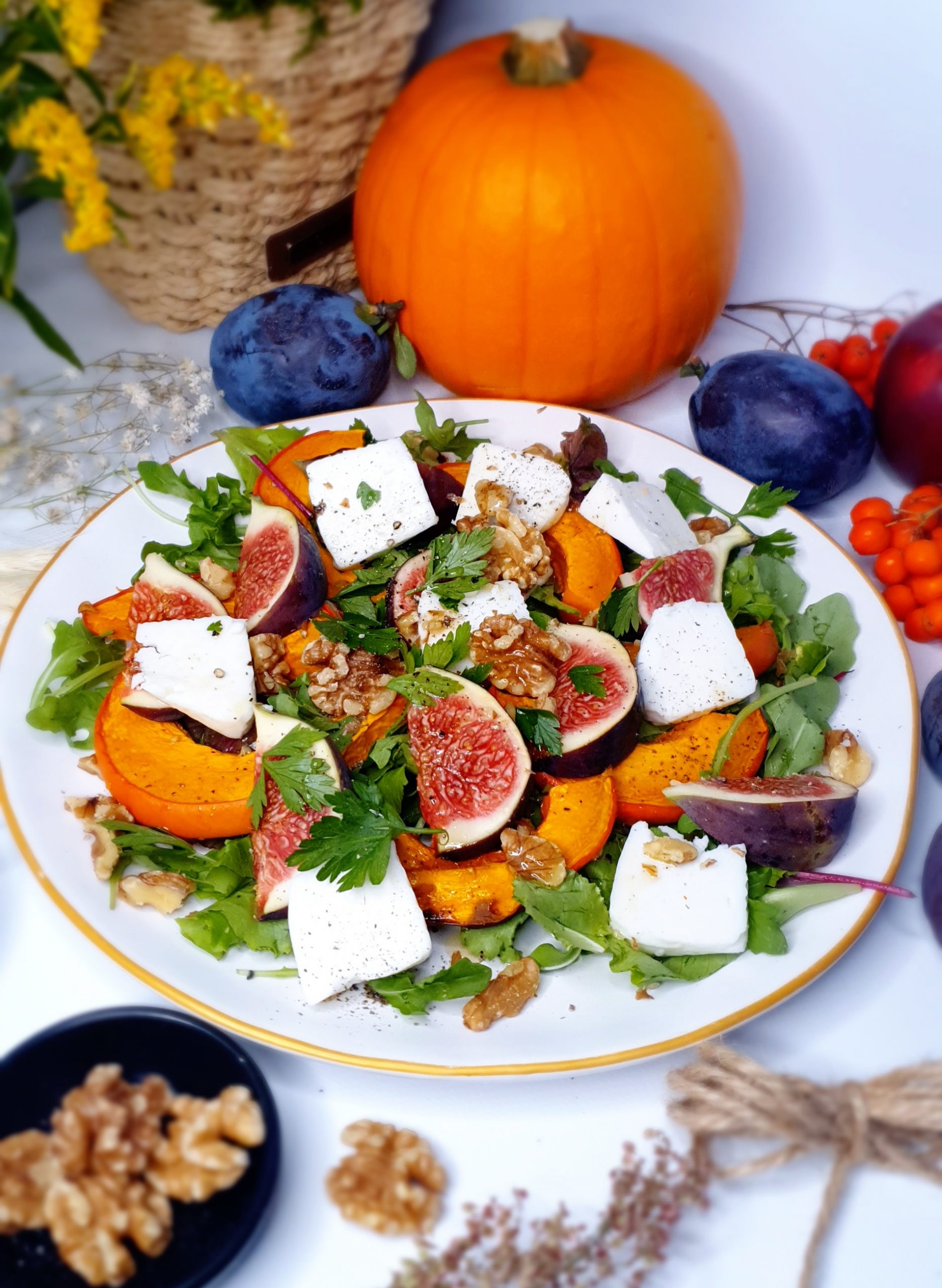 Sałatka z dynią, serem kozim i figą