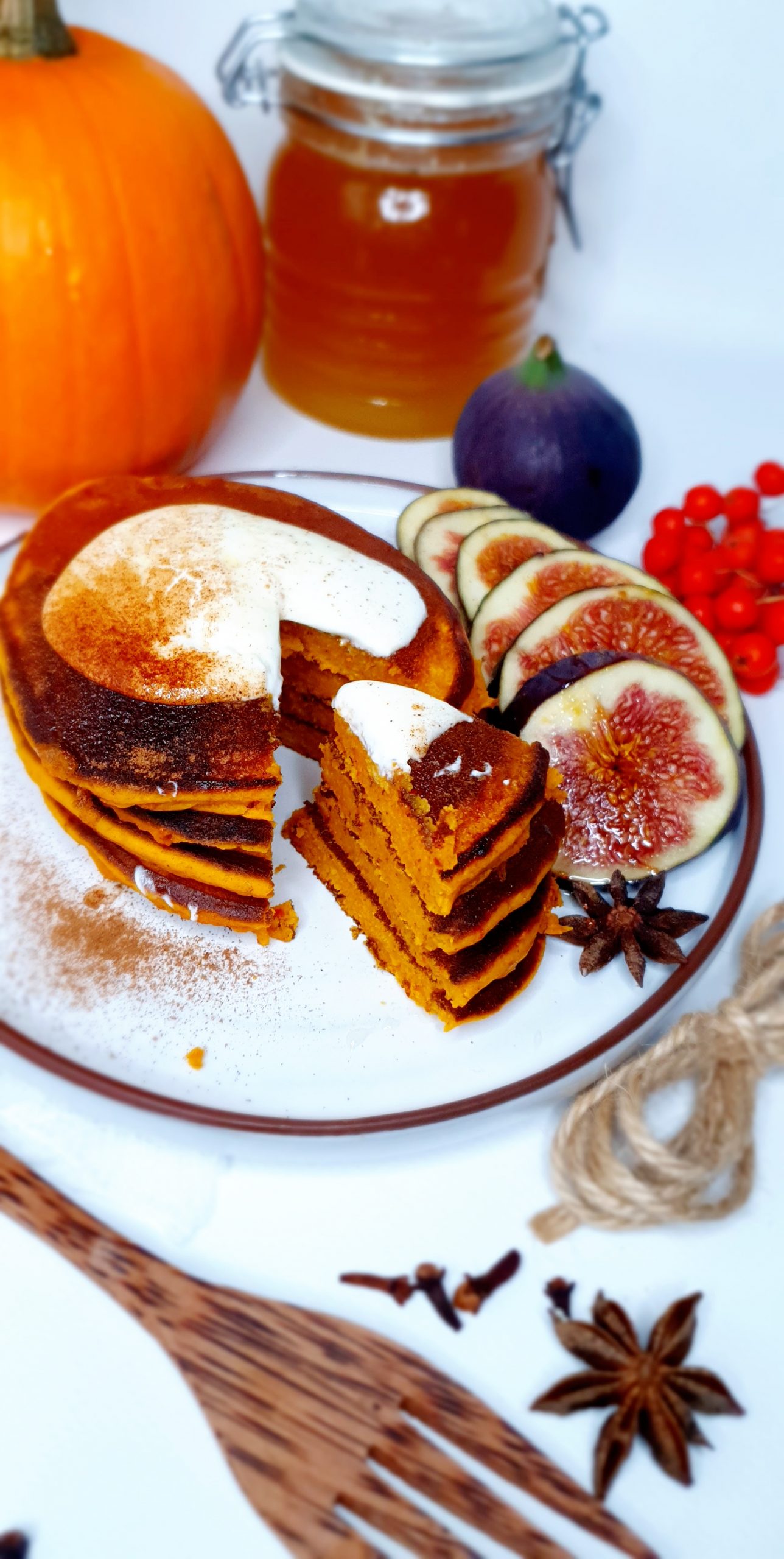 Dyniowe grubaski z figą i jogurtem