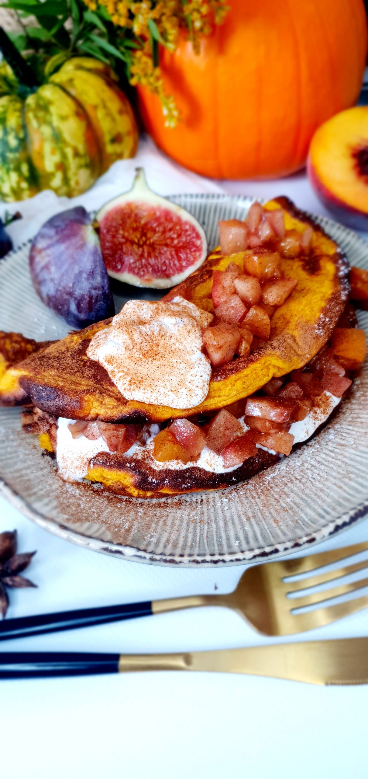 Owsiany omlet dyniowy z prażonym jabłkiem