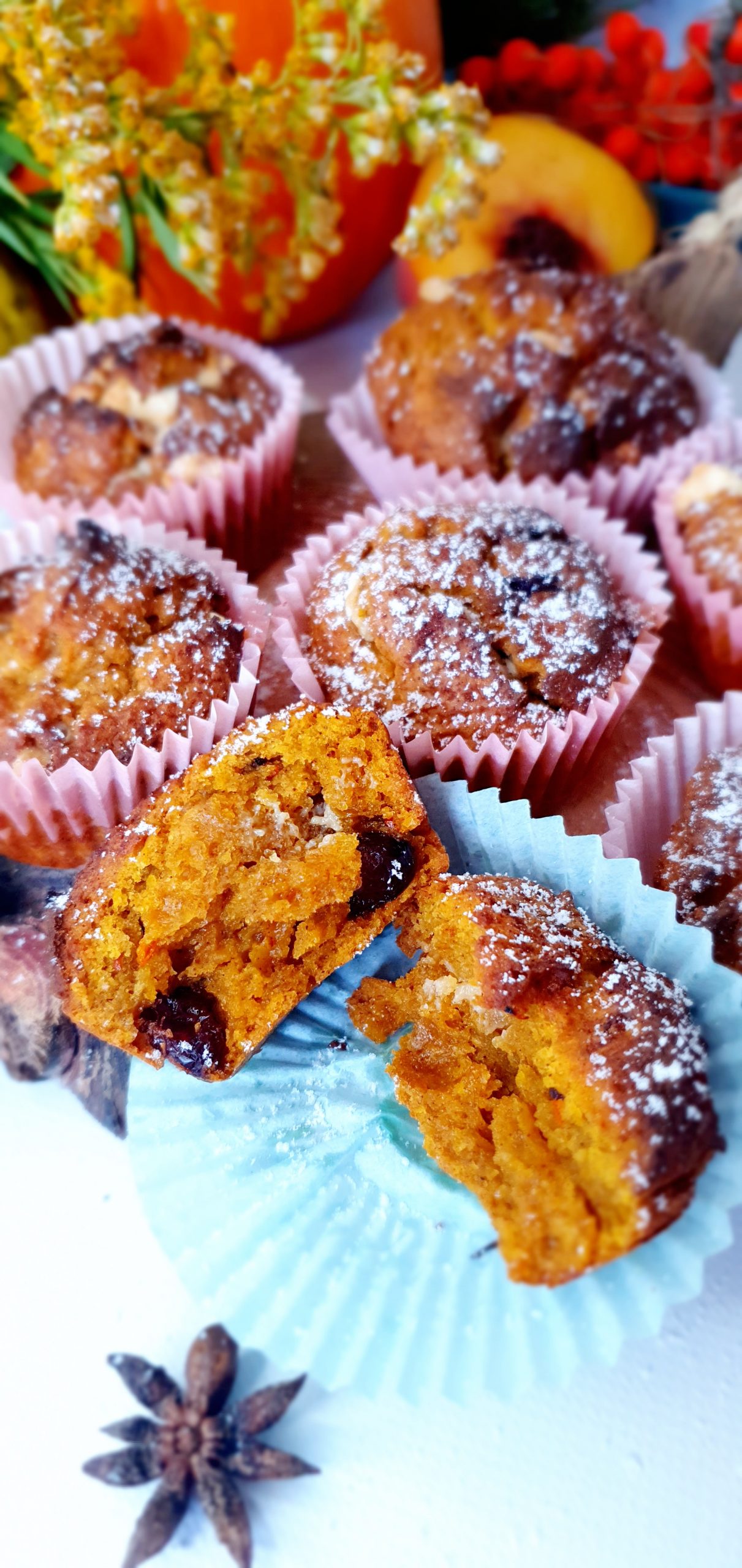 Muffinki dyniowe z żurawiną i białą czekoladą